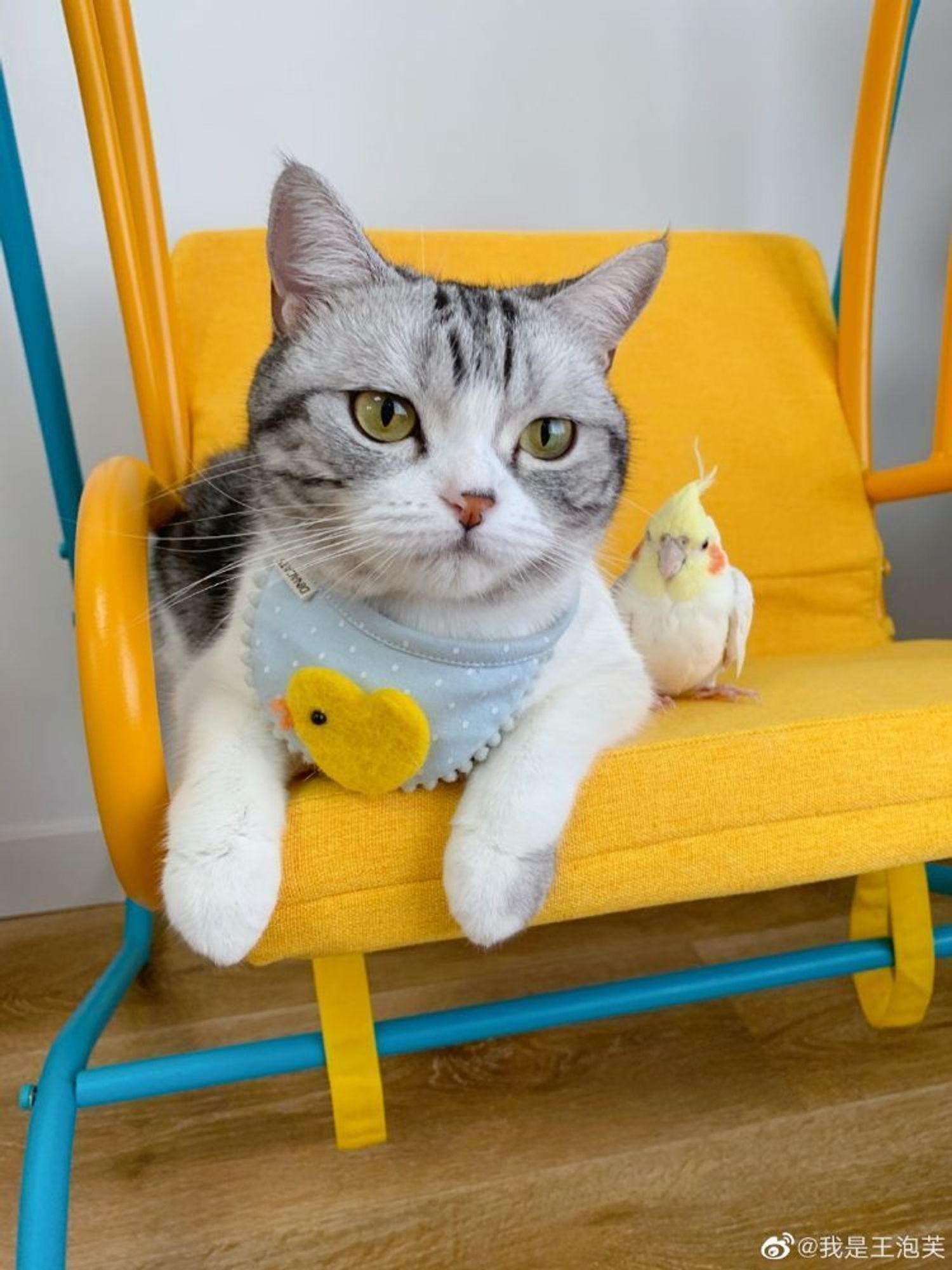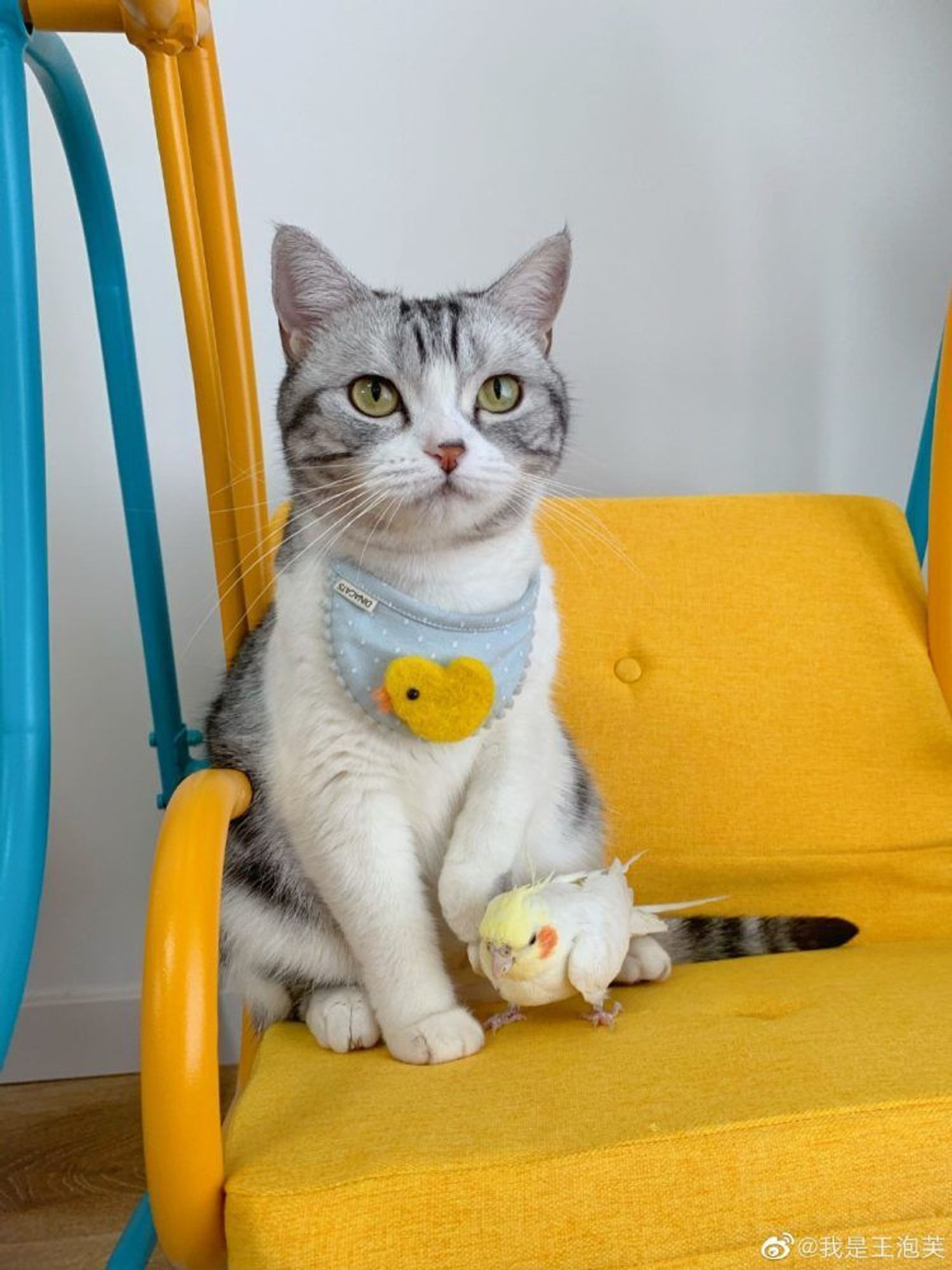 ▼最近泡芙有了一個新夥伴,那就是玄鳳鸚鵡「大漂亮」。剛開始泡芙對這隻鸚鵡很好奇,總是逗弄牠,現在牠們已經相處得很好,有時候還會一起玩,主人給牠們拍的合照很有愛。