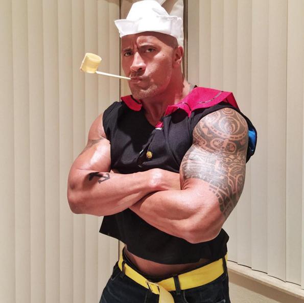 巨石強森的萬聖節裝扮都超有趣,尤其是扮演大力水手卜派,還原度太高了!如果要拍真人版電影的話,完全可以找他來演啊~