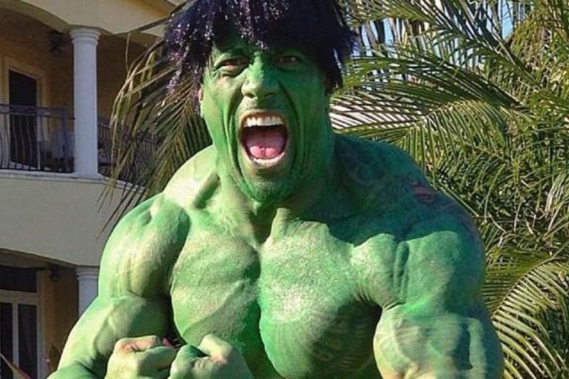 ▼巨石強森很喜歡萬聖節,他曾化身綠巨人浩克,這對身材強壯的他來說毫無難度。