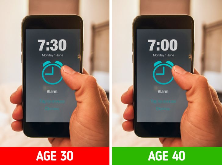 ▼睡眠時間減少:跟年輕時相比,40歲以後需要的睡眠時間變短了。研究顯示,40到55歲的人,每晚比20到30歲的人需要的睡眠時間少23分鐘。這聽起來不多,但也能做不少事了。