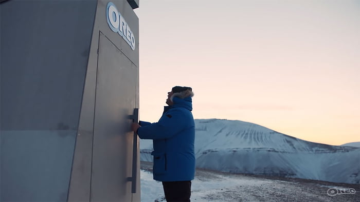2021年11月05日挪威有一座「末日種子庫」(Global Seed Vault),這是全球最大的種子庫,其中保存著全世界的農作物種子。種子庫不僅有學術價值,如果地球有重大狀況,還能發揮保留住植物生態的重要作用。沒想到Oreo受到啟發,也在同樣的地點修建了一座「末日餅乾庫」(The Global OREO Vault)~