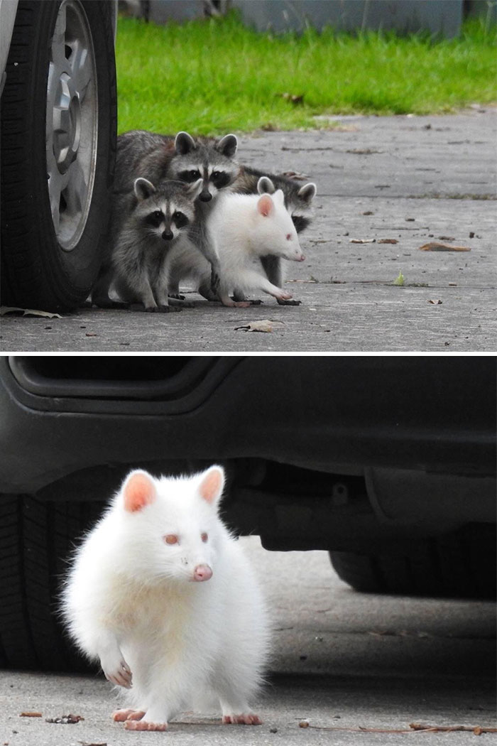 ▼4.超罕見的白色浣熊,美呆了!