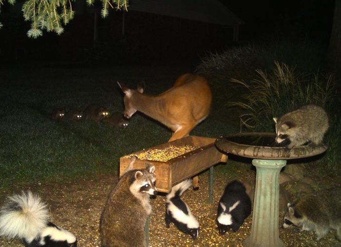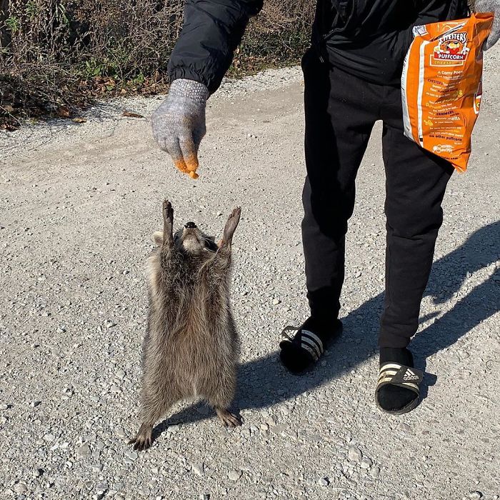▼17.在原來經常給牠們餵食的老人離開這個世界後,這4隻浣熊又找上了他的鄰居。
