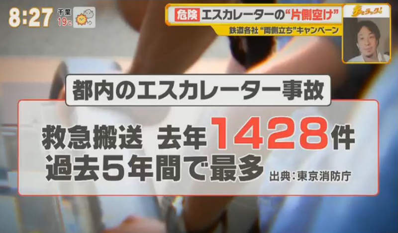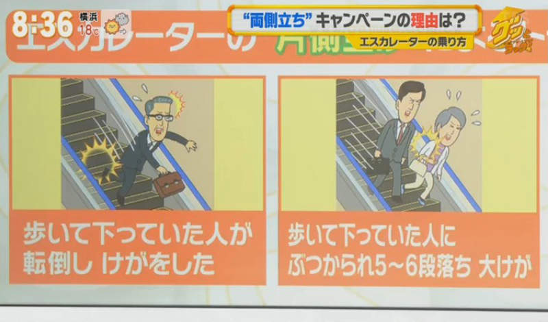 ▼去年東京發生的手扶梯意外數量創下新高,雖然鐵路公司一直在宣傳「站在手扶梯兩邊」,人們還是習慣空出一側,讓趕時間的人走,但在手扶梯上走其實很不安全!