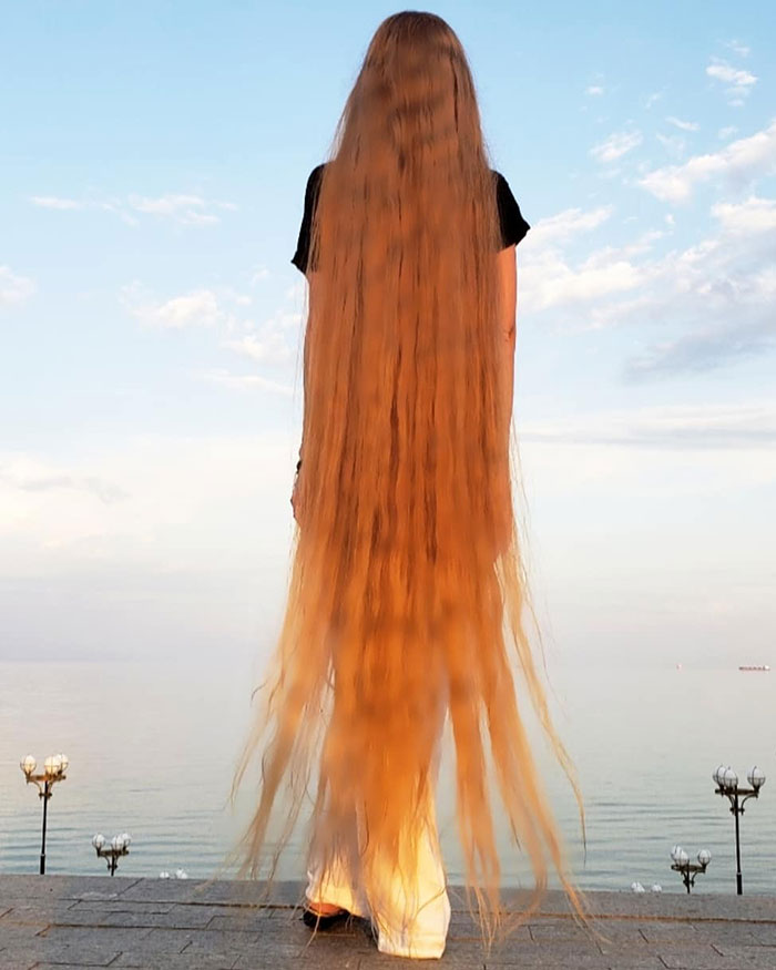▼Alena表示,她每週洗一次頭髮,洗頭後不會吹乾,而是讓頭髮自然晾乾,並使用純天然的產品護理。「長髮是我的一部分,是我自信的來源,也是我的財富。」