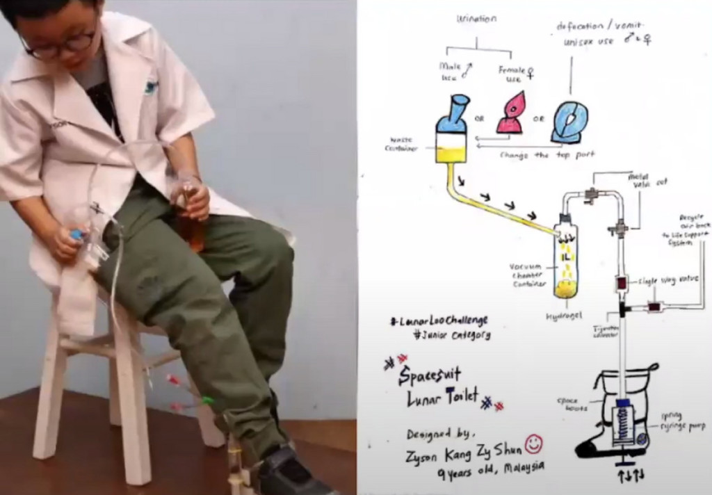 2021年11月13日人有三急,但身處零重力環境的太空人,該如何解決如廁的問題呢?這看起來是小事,卻是NASA一直以來面臨的最大困擾之一。最近一名來自馬來西亞的9歲小男孩簡子迅(Zyason Kang Zy Sun)提出了一個完美的解決方案!
