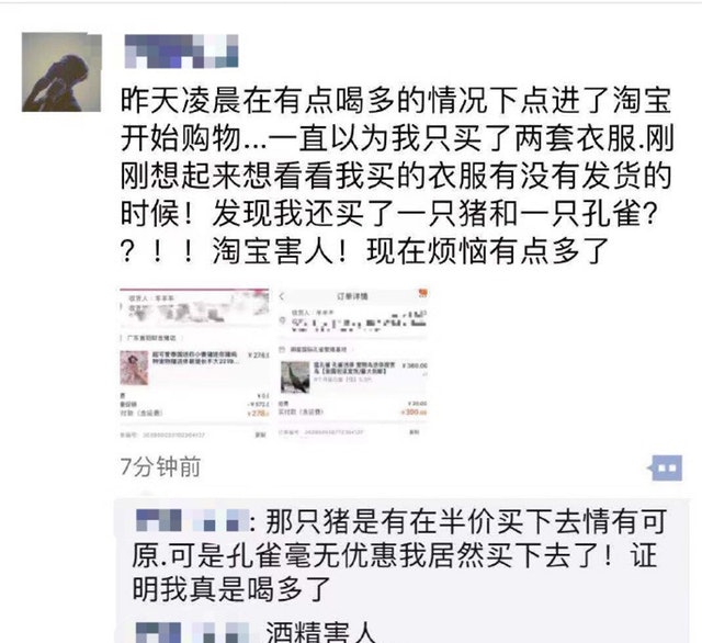 ▼這名男大生來自福建廈門,雙十一前晚他喝醉後隨手清空了購物車。他原本以為自己只是下單買了兩套衣服,第二天清醒後查看物流訊息,這才發現了「寵物小香豬」和「八個月雌性藍孔雀」這兩個訂單。