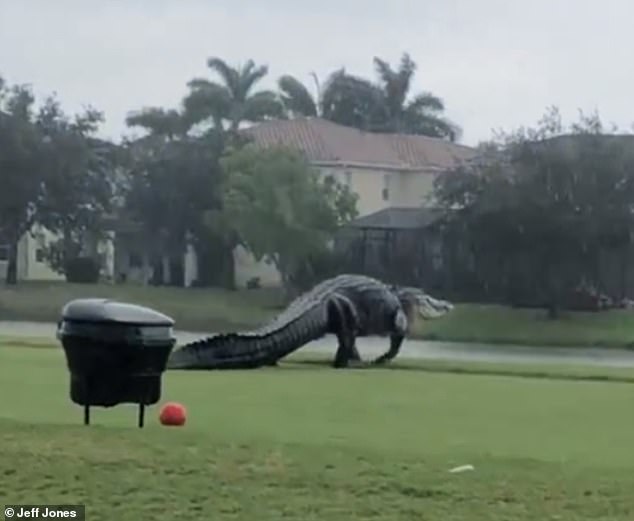 2021年11月15日美國佛羅里達州經常有短吻鱷出沒,該州估計有130多萬隻野生短吻鱷。近日在佛羅里達州那不勒斯(Naples)的高爾夫球場,一位網友Jeff Jones拍到了一隻約3公尺長的巨大鱷魚。牠超誇張的體型很快就在網路上引發熱議!