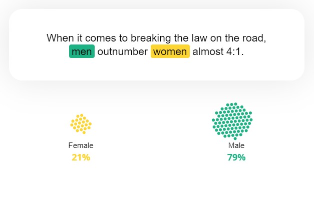 ▼這個網站以英國交通事故、違規等數據,發現了一個非常驚人的事實:在馬路上違規的人,有多達79%的比例是男生!