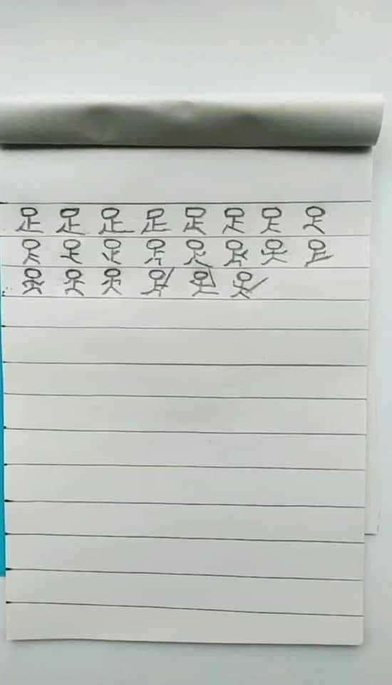 2021年11月15日小朋友的想像力超豐富。一名爸爸在社群網站po出兒子的作業,只見兒子在筆記本上寫了好多「足」字。剛開始他寫得很認真,但後面漸漸變成了不同姿態的「功夫小人」。網友們看到後都笑翻了。