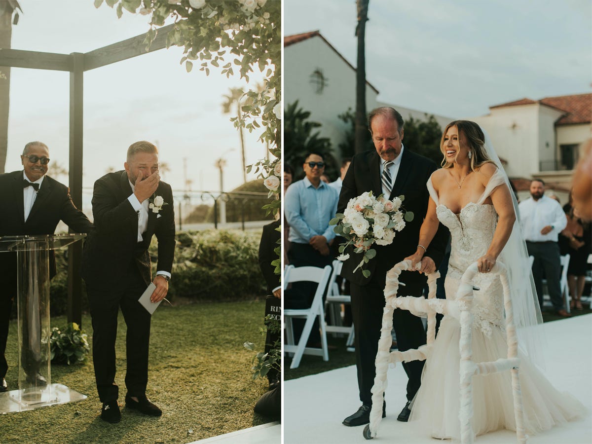 ▼Chelsie早就想好,在婚禮上要借助腿部支架站起來,一步步走到心愛的人身邊。婚禮之後的舞會上,她還特別設計了一支舞蹈,要給Jay一個驚喜。所以婚紗的裙擺不能太長,否則行動不便。這件婚紗的裙擺能夠拆下來,正好符合Chelsie的需求。
