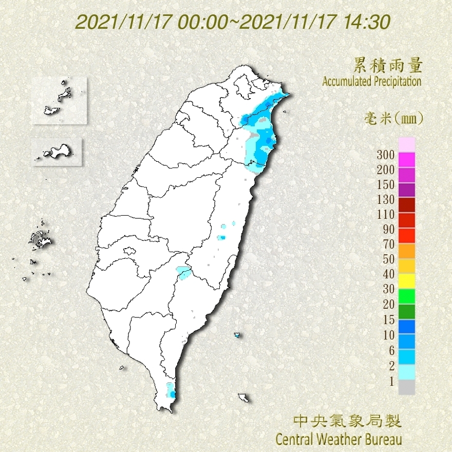 2021年11月17日又要變天了!中央氣象局表示,今天(17日)水氣開始增加,中部以北及東北部雲量增多,北部、東半部地區及中南部山區有局部短暫雨。明天(18日)東北季風稍微增強,天氣轉濕冷,週末天氣再度回暖。下週一(22日)會有強冷空氣報到,一直影響到下週四(25日),最低溫落在下週二、三(23、24日)。