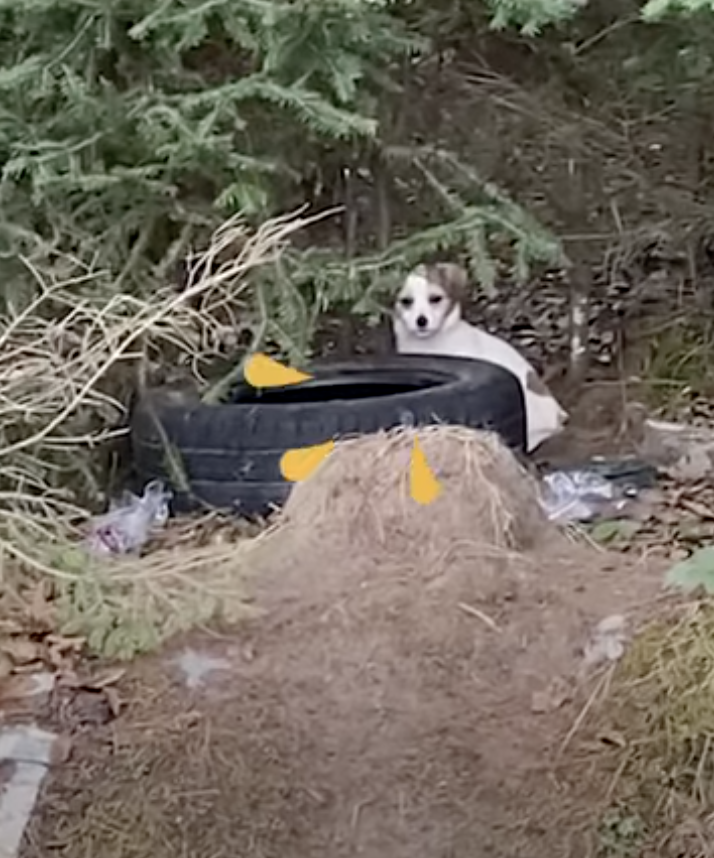 舊輪胎是牠的家!森林「流浪小奶狗」警戒心超強 志工「苦守多天」終於贏得牠信任