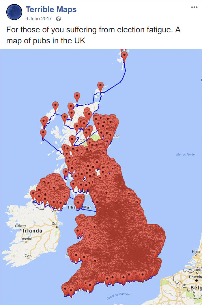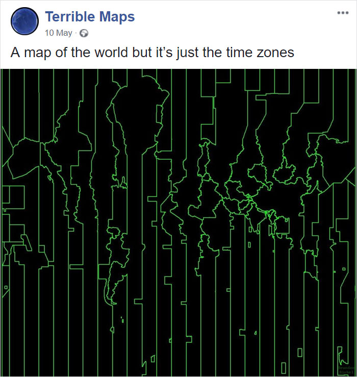 2021年11月18日現在網路越來越發達,每個人的手機裡都有地圖App,但你有多久沒有好好研究不同類型的地圖了?臉書粉專「Terrible Maps'」收集了很多有趣的地圖,它們也許用處不大,卻能讓你從另一個角度看世界。