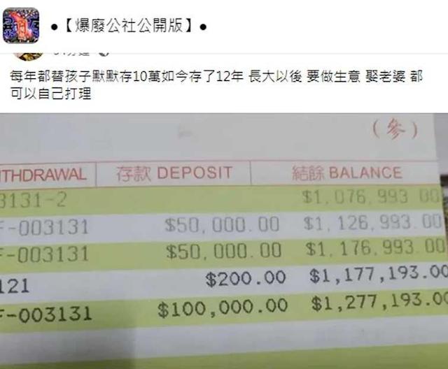 連續12年!爸每年幫小孩存10萬 「戶頭已百萬」網揭殘酷後果