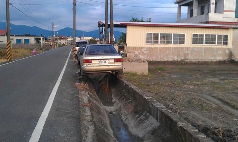 ▼從原po貼出的照片來看,高雄美濃的鄉間道路上,路邊的水溝停著許多台汽車。水溝和車輛的寬度幾乎吻合,想要開進去不僅需要高超的車技,還要有強大的自信。原po寫道:「似乎是美濃鄉間的日常…」