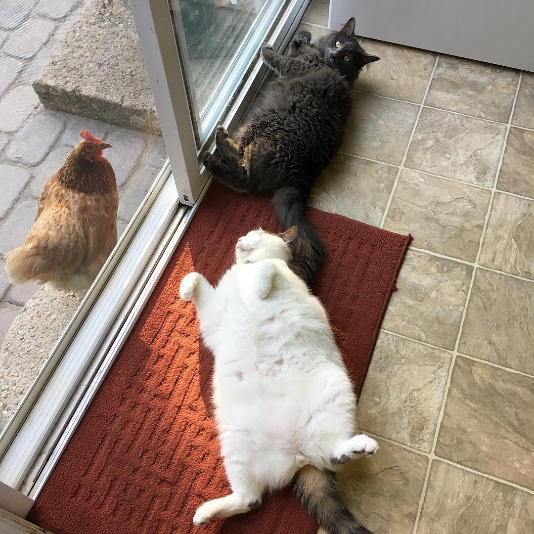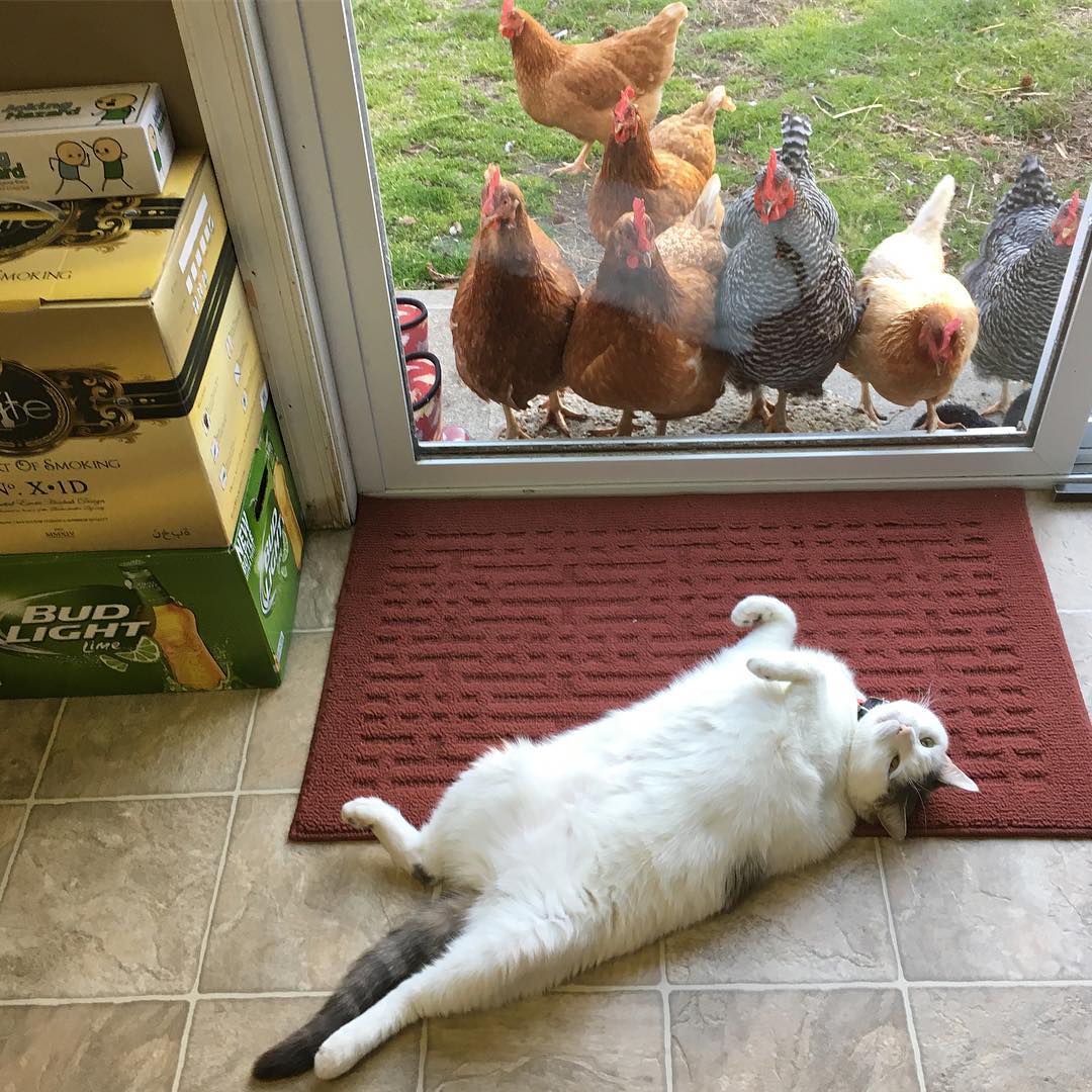 胖貓皇離奇收編「雞群鐵粉」 每天躺門口「擺不同英姿」接受膜拜