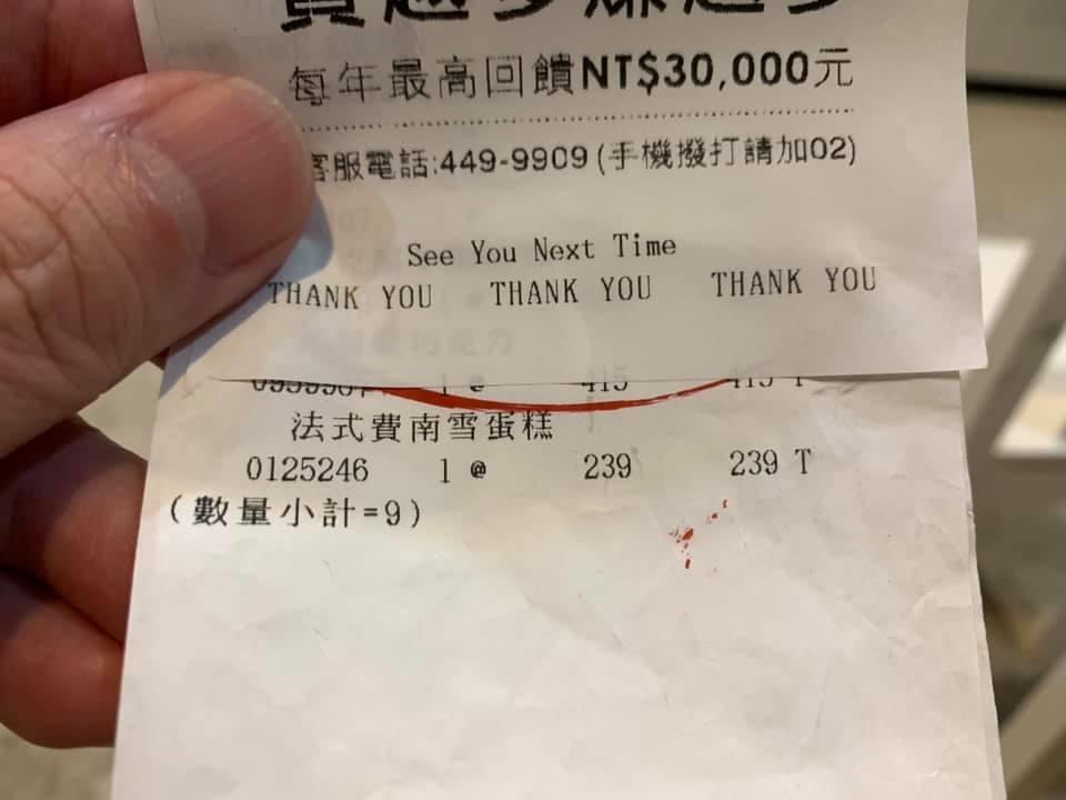 ▼原po表示,他當時在好市多南崁店買了一個「法式費南雪蛋糕」。蛋糕原價289元,折扣過後239元。9天後他再去好市多買東西,逛到麵包區時發現這款蛋糕竟然降價只賣97元。他立刻去問麵包區的員工,為什麼會降這麼多,員工表示:「對啊就這樣!」