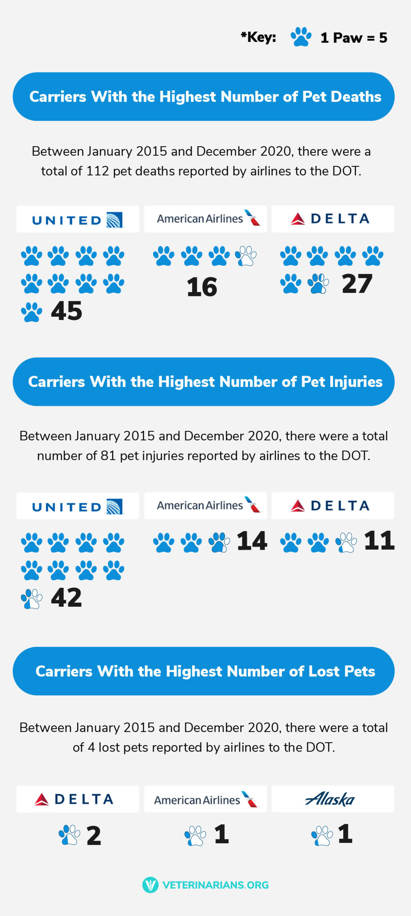 2021年11月26日很多人熱愛旅行,如果有養寵物的話,當然希望帶著自己心愛的毛孩一起去看不同的風景。航空公司基本上都允許攜帶寵物,但帶寵物搭飛機,哪一家航空公司最安全呢?Veterinarians.org分析美國交通部2015年初至2020年末的數據,進行了一項全新的研究~