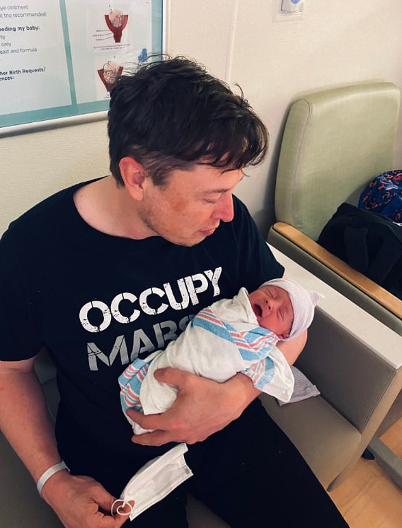 2021年11月25日日前特斯拉執行長馬斯克(Elon Musk)透過視訊參加一場與美國國家科學院的會議。他竟抱著自己18個月的兒子「X寶寶」共同登場。X寶寶乖乖待在爸爸懷裡,臉上掛著嬌憨的笑容,還時不時對鏡頭打招呼。馬斯克看到兒子的可愛表現,笑得非常開心~