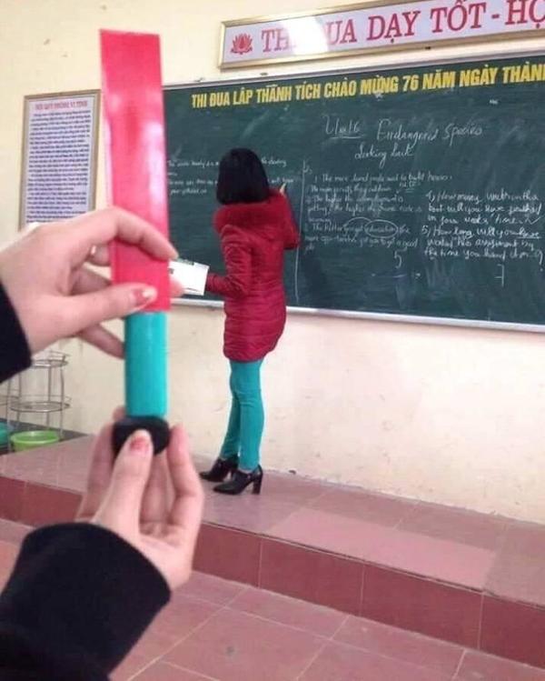 ▼文具跟老師的衣服配對成功,看起來很有趣。認真講課的老師應該不知道學生們在做什麼吧~
