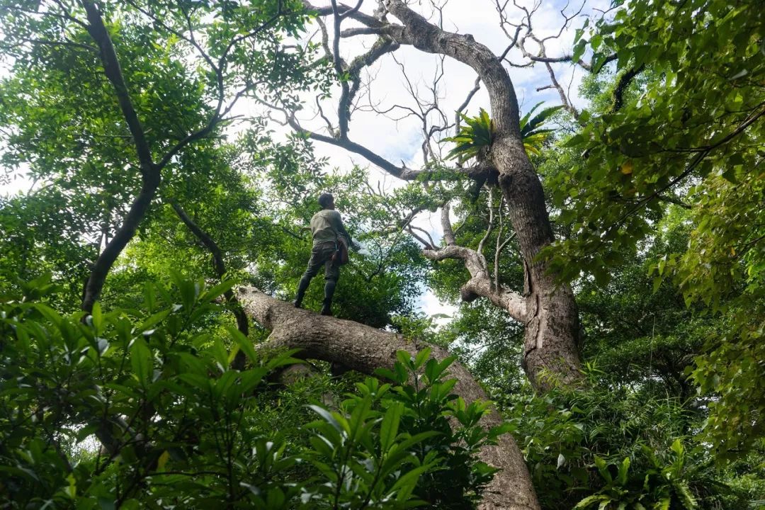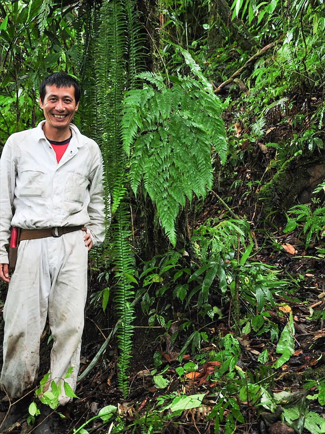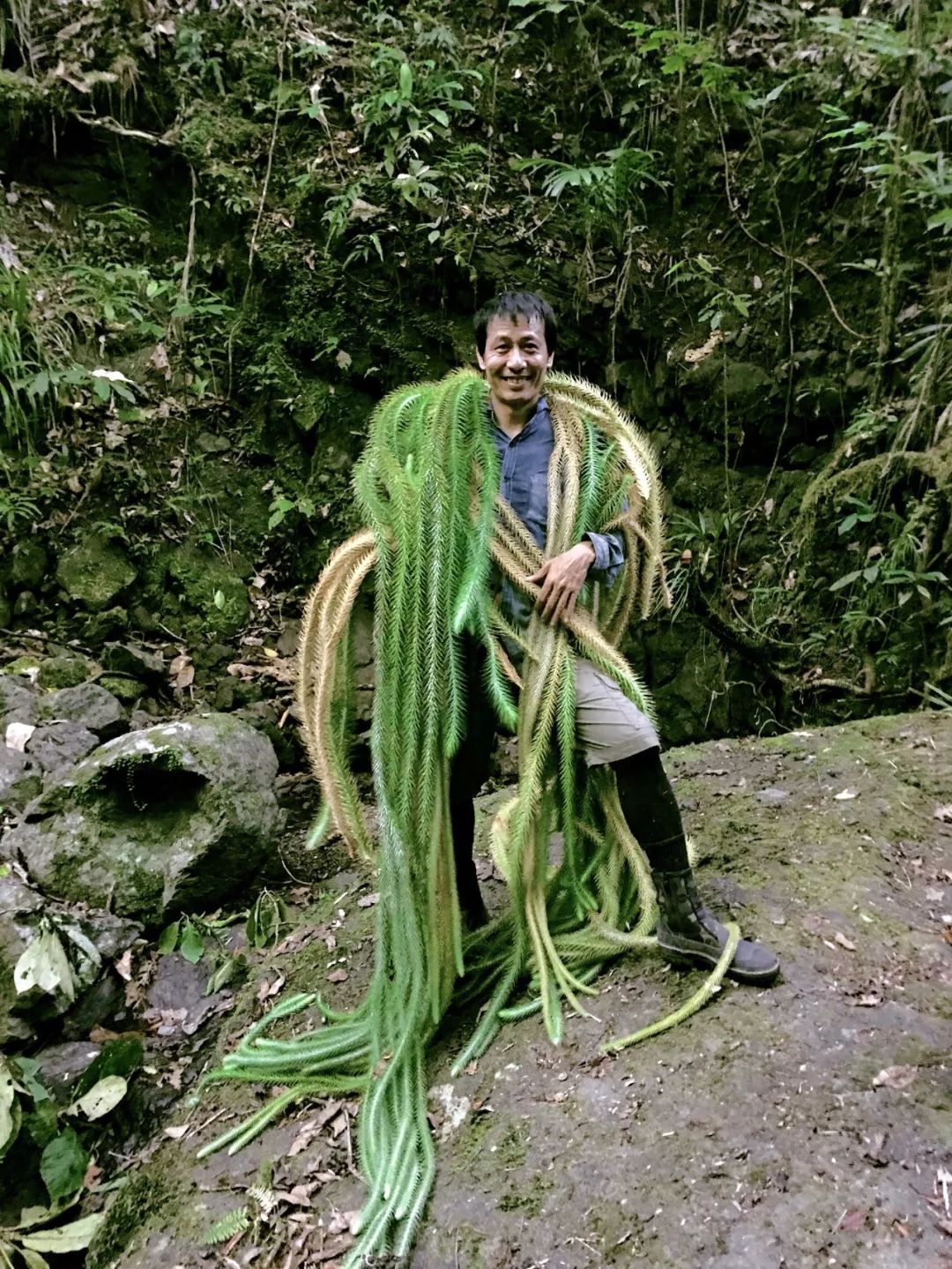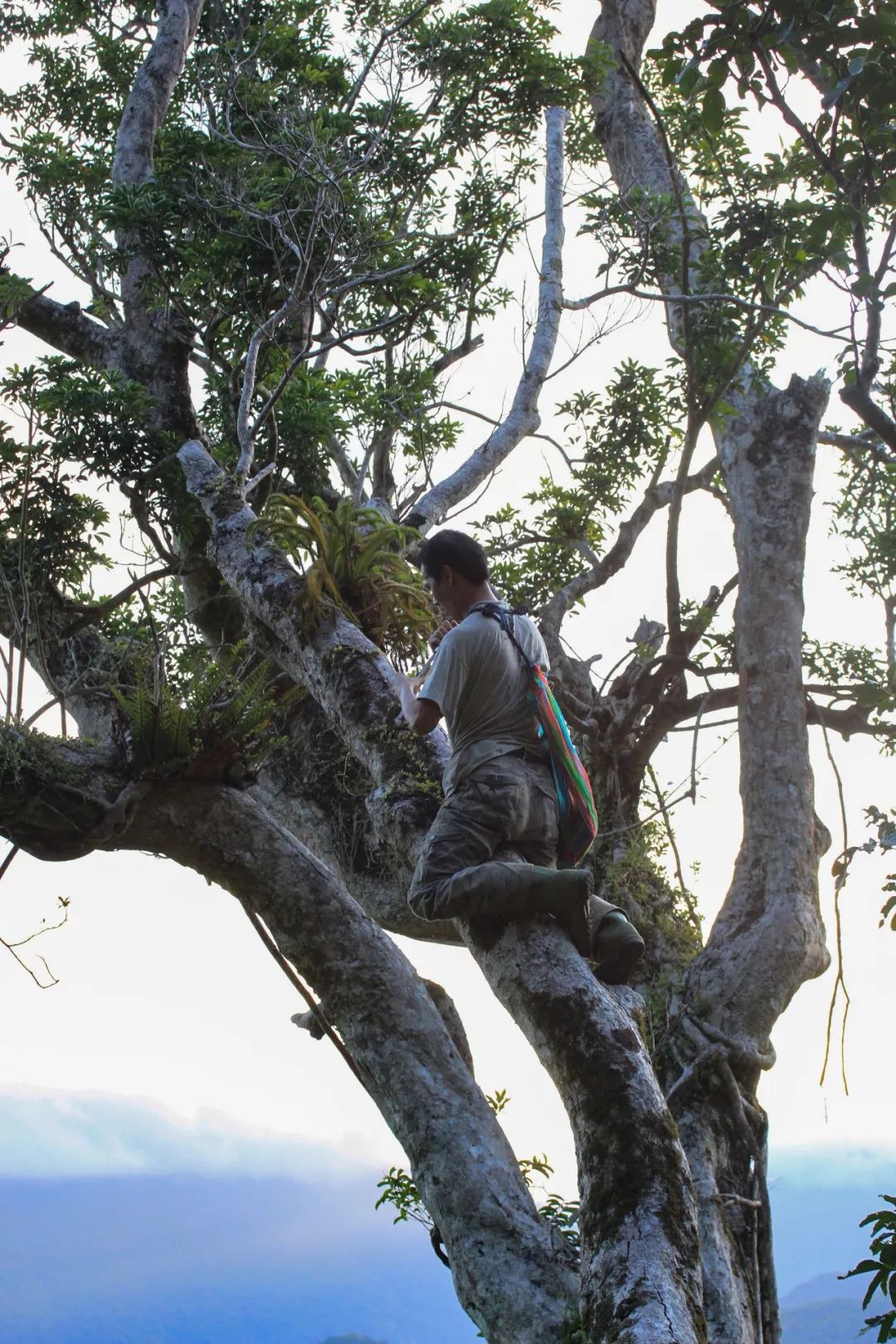 ▼說到阿介的同事,隨便一個都學歷很高,不是碩士就是博士,只有阿介一個是初中畢業的。但是他卻靠實力,讓同事對他非常尊敬,還給了他綽號「介神」。同事們說,「我看過他爬上過幾千棵4、5層樓高的樹,太神了。」保種中心的執行長李家維教授也說:「看到阿介爬上當地土著都不敢爬上去的大樹、摘下馬尾杉、纏繞在身上的時候,就像看到了西方几百年到熱帶叢林探險的植物獵人。」