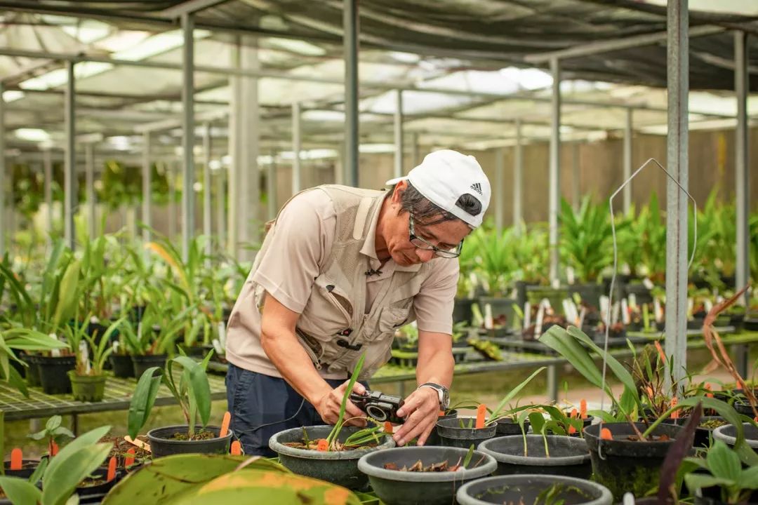 ▼48歲的阿介在辜嚴倬雲植物保種中心已經工作數年,這裡是世界上最大的熱帶植物保種中心。根據資料,收藏超過32587種植物,台灣目前有記錄的植物,不過5000多種而已,這裡的蘭花、苔蘚、秋海棠等植物都是世界第一豐富。