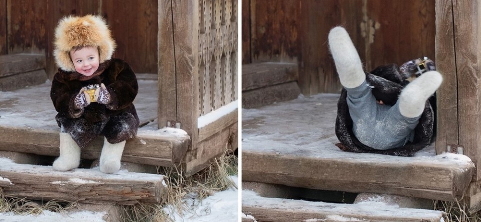 ▼俄羅斯的冬天非常漫長,溫度也低得驚人。媽媽們為了讓脆弱的寶寶們暖和一點,簡直使出了渾身解數。她們幫寶寶穿上厚厚的毛皮外套、戴上毛帽,還要再綁上絨毛披肩或圍巾,直接把孩子包裹成一顆厚重的圓球。