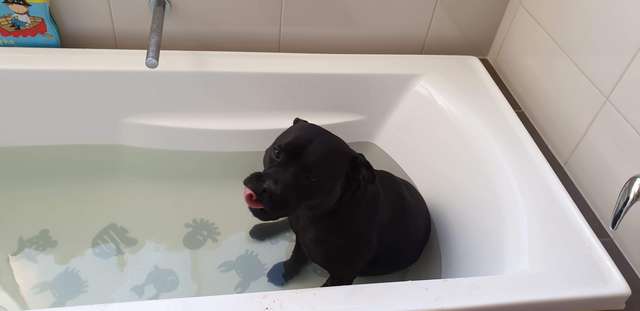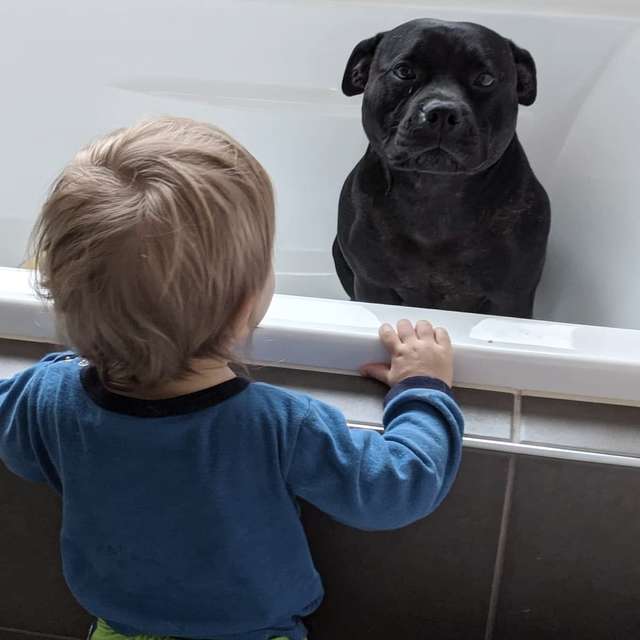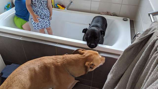 ▼Aeida 的主人妮可(Nicole Ackehurst)在接到鄰居的簡訊,通知她 Aeida 每天晚上都會在孩子的入浴時間來到他們家浴室時,讓她也嚇了一大跳。因為在她的印象中,Aeida 是不喜歡洗澡的,沒想到如今有了鄰居孩子們的陪伴,這竟然變成了牠最喜歡的活動之一!