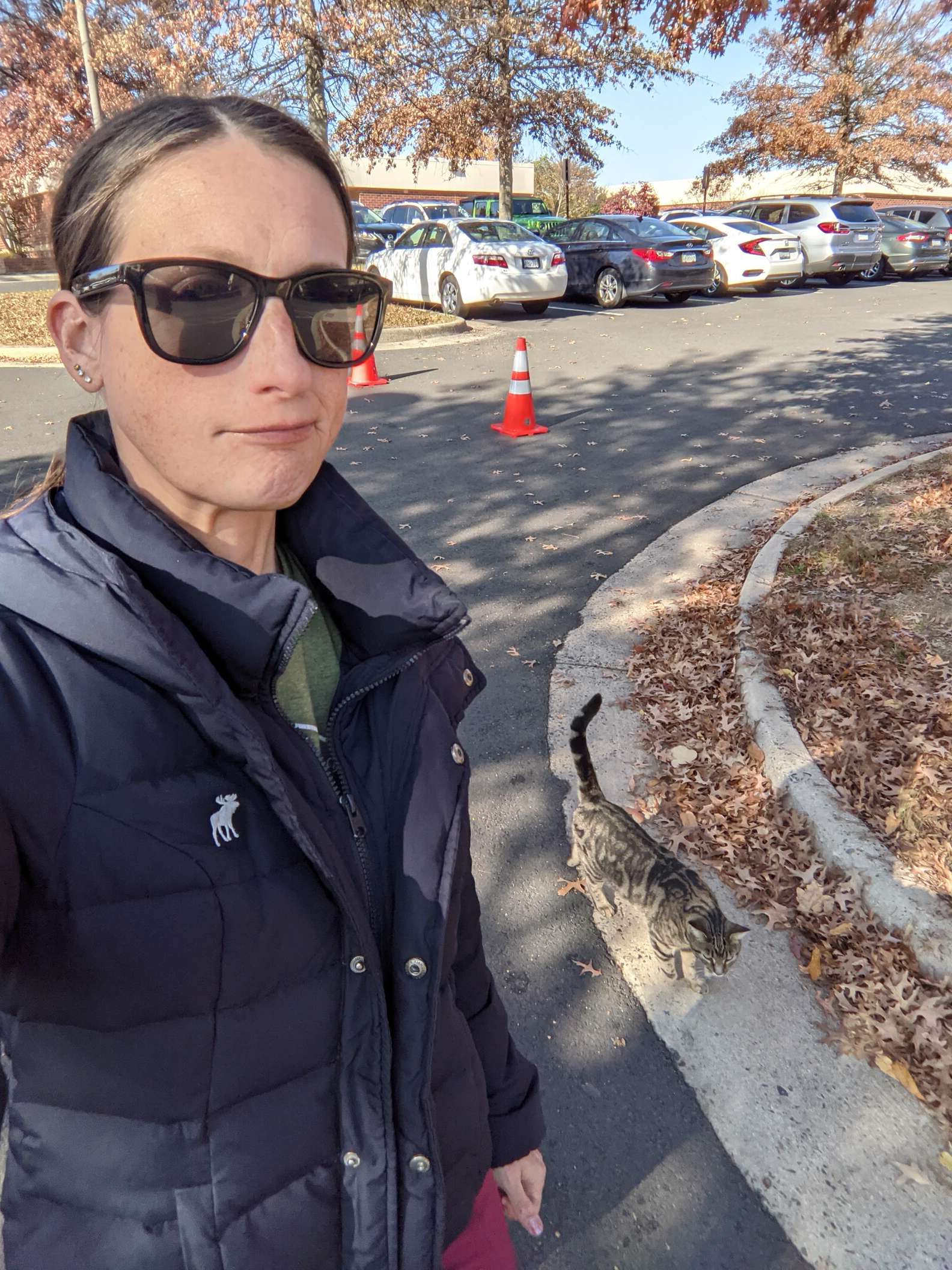 ▼Lucier趕到學校時,一眼就看到準備闖進校門的Luna。Luna聽到馬麻的聲音,立刻喵喵叫著跑了過來。牠還是不甘心,不想那麼輕易就回家,Lucier只能耐心哄牠,告訴牠回家有點心吃,牠這才肯乖乖回去。