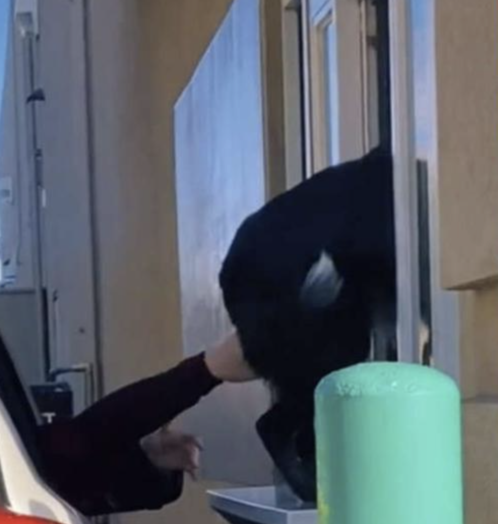 這隻叫BooBoo的狗狗是星巴克的常客,牠非常喜歡吃puppuccino。那天主人停車後,牠迫不及待鑽出車窗,趴在得來速窗口,好像在催促店員動作快一點。Dana覺得這一幕很有趣,連忙拿出手機開始拍攝。