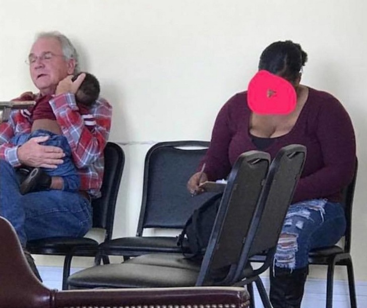 ▼「這個男人主動要求幫她抱孩子,讓孩子的媽可以好好地填表格。」