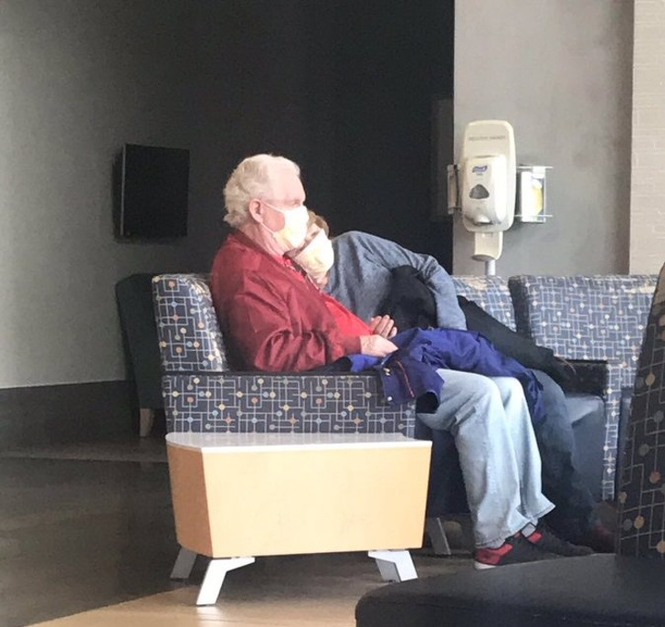 ▼「醫院裡看到這一幕我超感動。老爺爺居然把自己當成枕頭讓老婆靠著休息!」