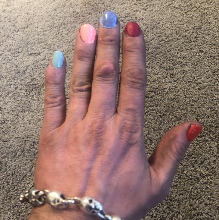 ▼「我是一個單親爸爸和有點髒髒的修車技工,但是女兒們卻很愛我,每次去接她們,我的指甲都會變得色彩繽紛。」