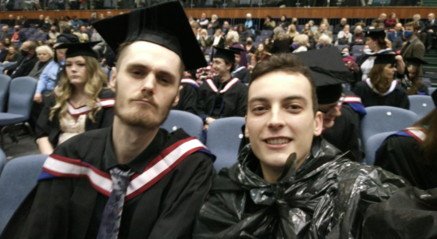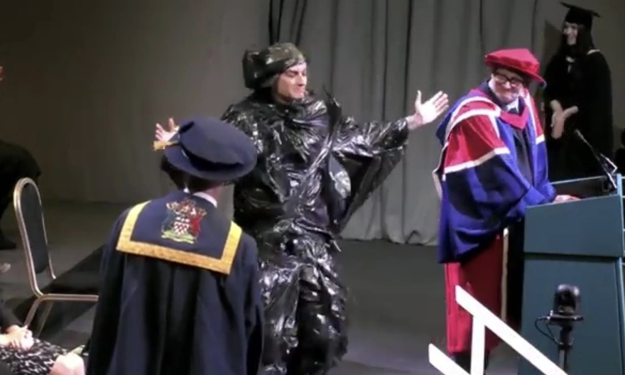 2021年12月01日在英國格洛斯特大學(Gloucestershire University),畢業生租借全套畢業袍要花費246英鎊。這對於很多學生來說是一筆巨款。23歲的Will Radford在該校修讀攝影,11月24日早上,他出席學校的畢業典禮,身上竟穿著用黑色垃圾袋自製的業袍~