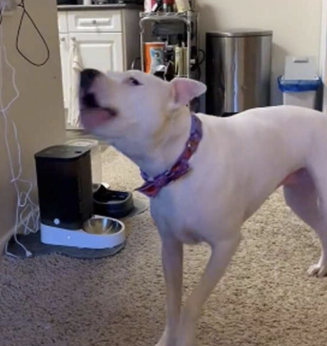 阿汪不滿新來的「寵物餵食機」 故意在主人面前罵罵號:牠要餓我!