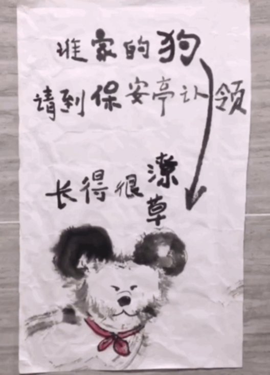 撿到走失汪…保安貼畫像點評「長得很潦草」 網友一看本尊全笑翻:真的很潦草!