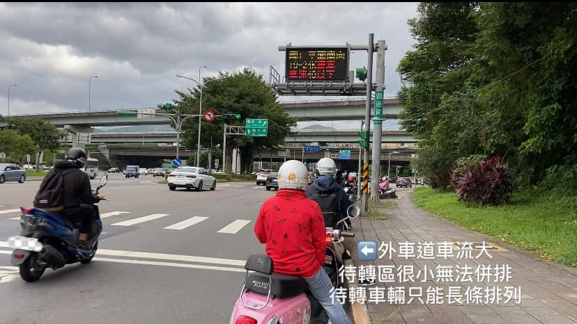 ▼其實不論是新北或是台北,在通勤時間交通流量大,待轉格有可能無法容納大量機車,只要民眾不注意,就有可能會被開罰!主播黃怡文表示日前行經內湖成功路和石潭路口時,機車未停於待轉區,黃怡雯提出質疑表示自己有代轉,就在隊伍裡,只是由於待轉格子太小、所以沒辦法進入待轉區,但是警員卻表示如果沒有在待轉格子中,就是要等下一次綠燈。