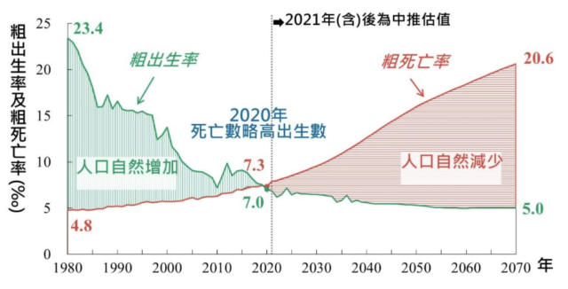 ▼2020年台灣的出生人數為16萬5,249人、死亡人數為17萬3,156人,死亡人數「首度」超越出生人數,正式進入人口負成長。不僅如此,2020年結婚對數下降,連帶也影響了2021年新生兒的數量,2021年1月的新生兒數量首度出現單月不足1萬人的紀錄。