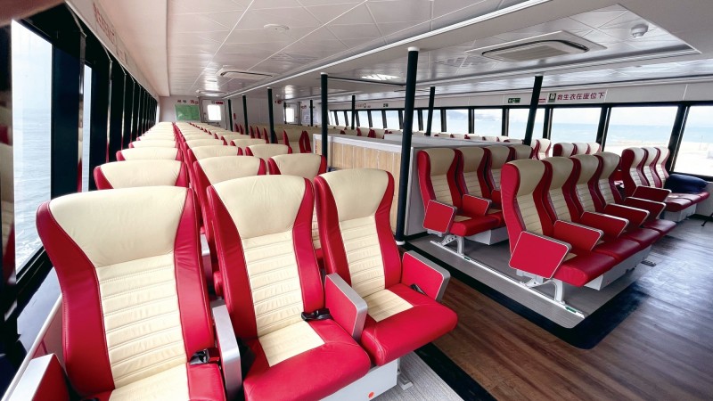 ▼南北之星是斥資2.5億元打造的,為新加坡製造,於今年8月底運抵台灣,全船採可斜躺式座位,船長49公尺、船寬8.5公尺,最大船速則可達到每小時40節。這艘快輪具備高速、穩定、高乘載量等優勢,相較離島飛機絲毫不遜色,將成為台馬交通的一顆閃耀新星。
