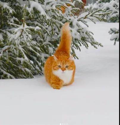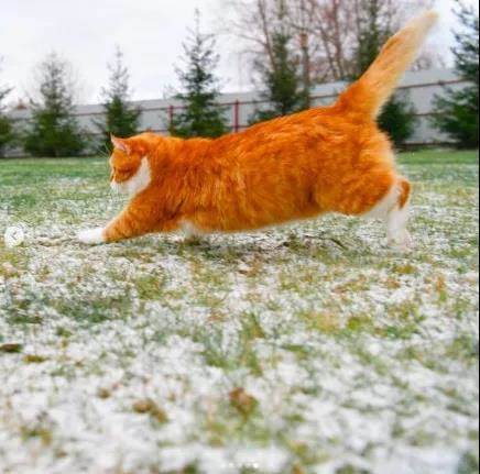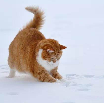 現實版加菲喵! 小胖橘伸「白手套掌掌」招財太古錐 一碰到雪地秒變身:最靈活胖子
