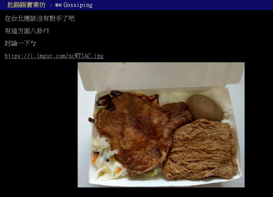 ▼原po表示,台鐵的排骨飯1個60元,菜色20年來幾乎沒有變,有排骨、高麗菜、豆皮、滷蛋,「應該算便當菜色的最大公約數吧?沒什麼可以挑剔了,而且一個才60元」。他認為台鐵便當的價格相當划算,不禁好奇問:「在台北應該沒有對手了吧?有這方面的掛嗎?」