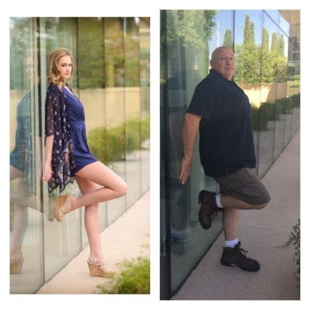 ▼他模仿女兒的照片,在同樣的地點、用同樣的動作,神還原了一系列照片。