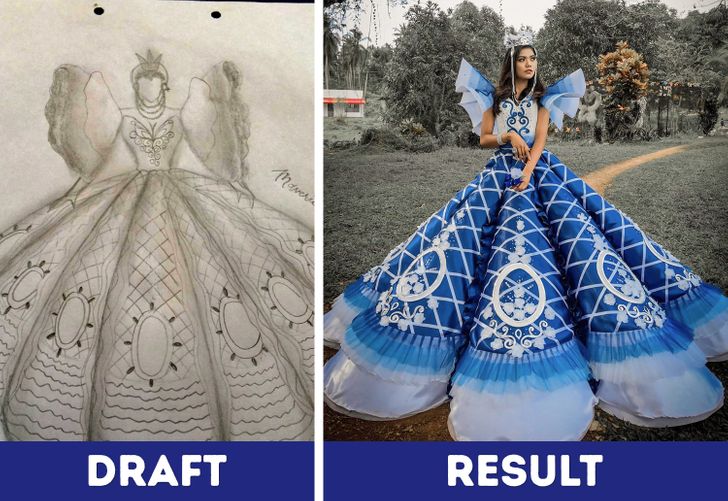 ▼這位叫Maverick Francisco Oyao的哥哥是一位大學生,他沒有設計衣服的經驗,但學習能力很強。他上網搜尋資料,先畫出設計圖,再買來布料,並向有縫紉經驗的朋友請教,一步一步製作這件夢幻的禮服。