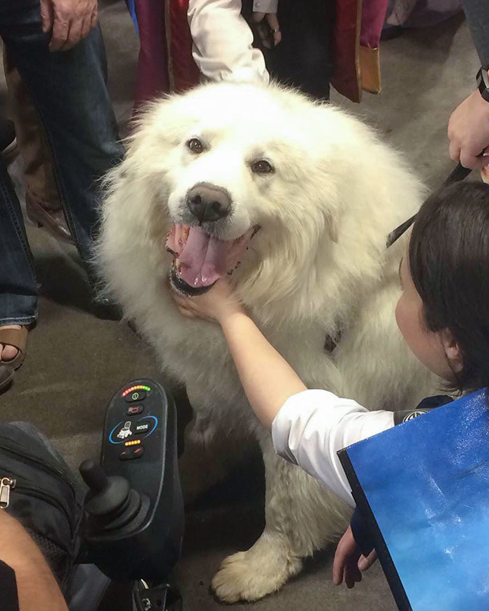 ▼紐芬蘭犬以前是漁夫們的工作犬,現在牠們作為治療犬到康復中心送溫暖。