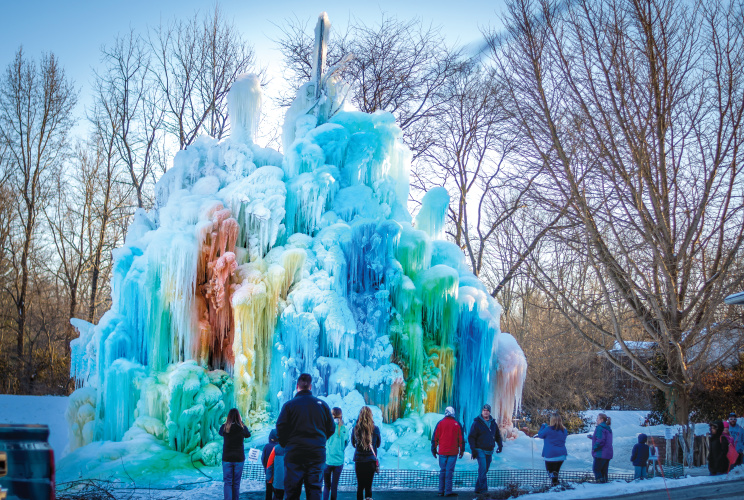 ▼實際上維爾家族的聖誕樹並沒有用到真的樹,而是將水管固定在木樁上,在寒冷的冬夜轉開水龍頭,讓水滴自然地凝結成冰樹。
