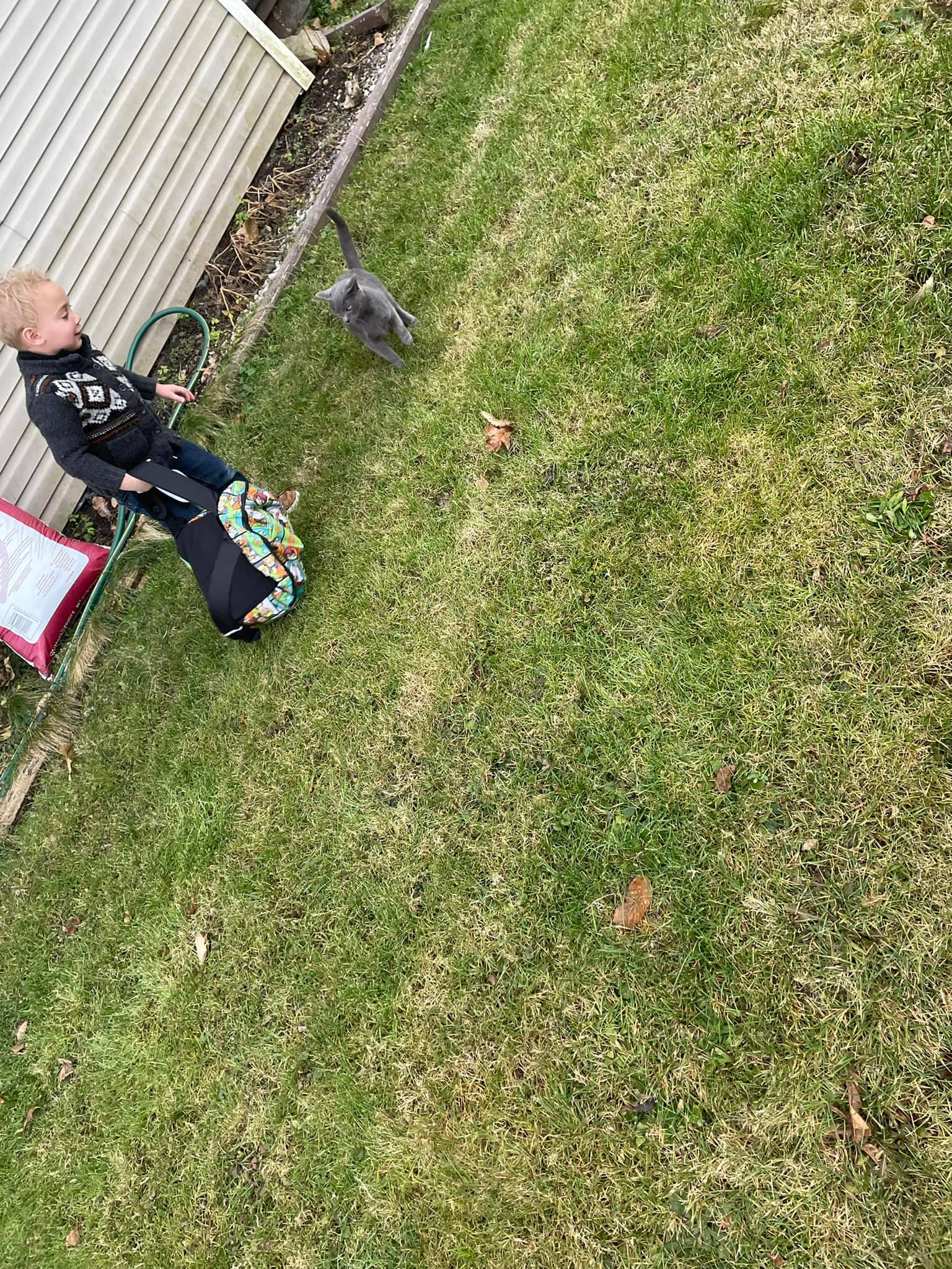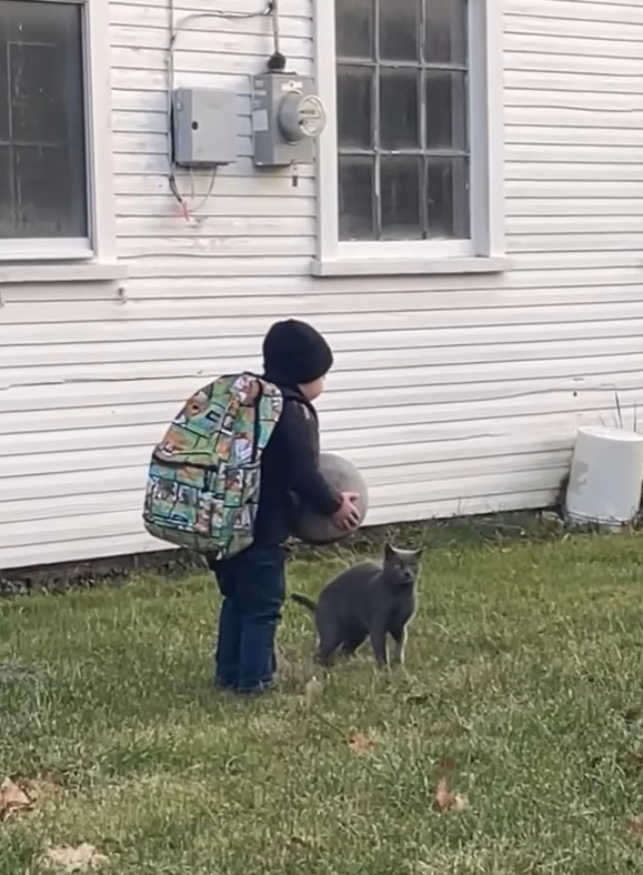 ▼Emily表示,最近這段時間,她發現每天早上都會有一隻貓咪出現在自家庭園,而且每次都堅持要護送兒子Owen走到等校車的站牌。有時貓咪還會在放學的時間跑去車站,專門陪Owen回家。Emily覺得這隻貓咪很可愛,就給牠取名為Blue。