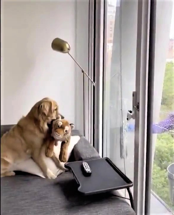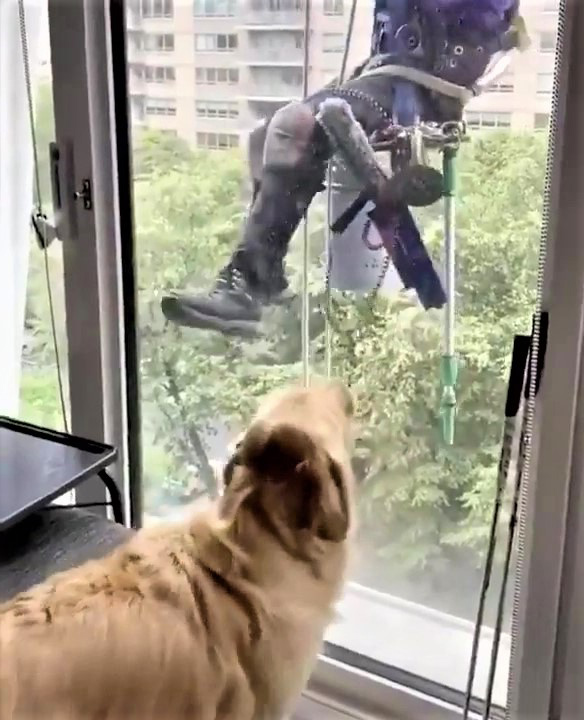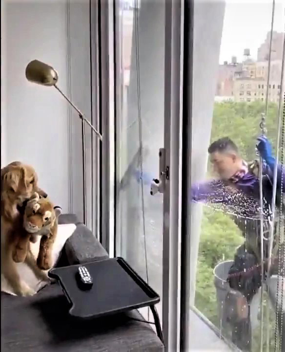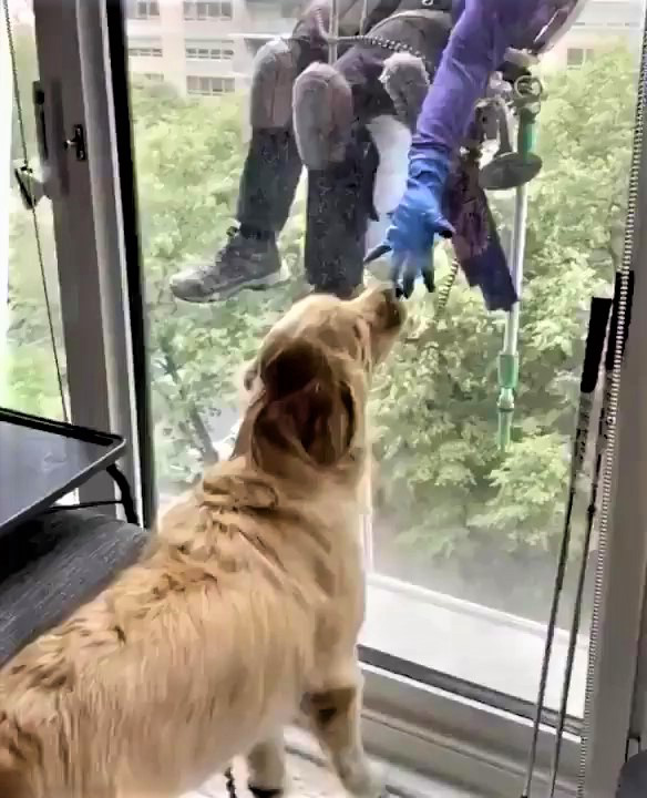 2023年07月16日親人的狗狗太可愛了~國外一名網友家住高樓層,平時會有洗窗工人在窗外進行清潔。家中的金金對窗外的人非常好奇,牠希望得到關注,很想跟人家交朋友,就會把玩具叼過來,邀請人家一起玩。牠那純真可愛的模樣讓人不禁嘴角上揚。