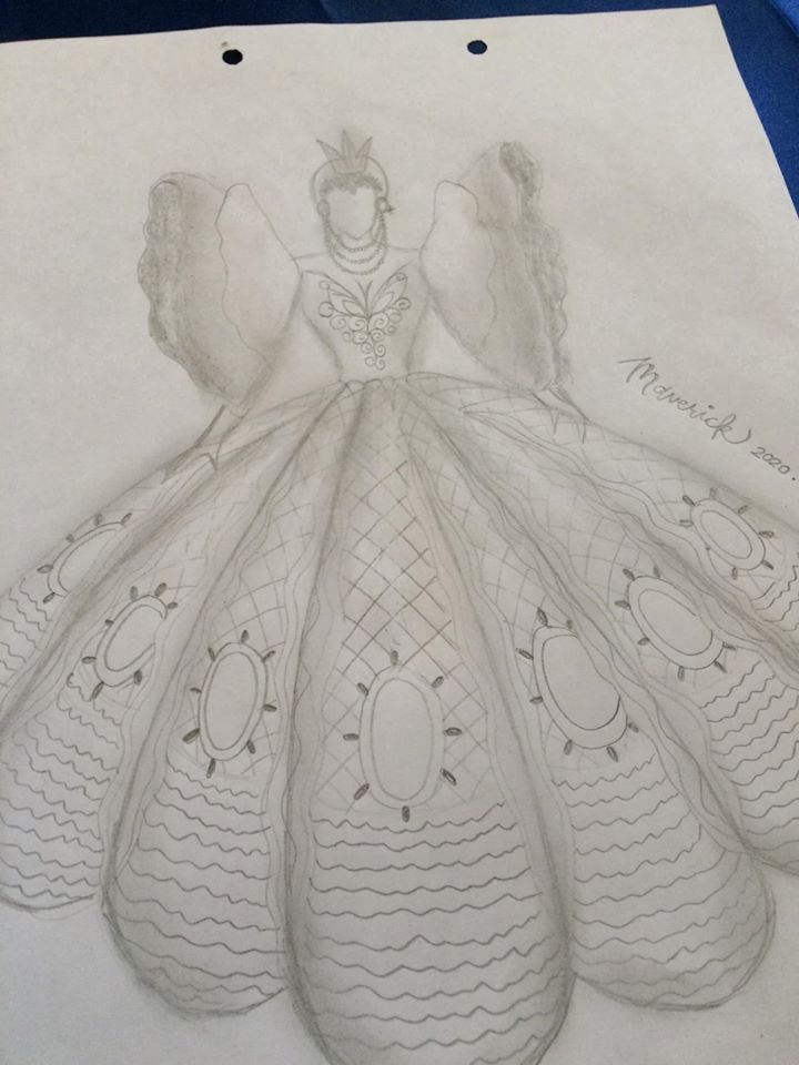 ▼Maverick以前沒有設計衣服的經驗,為了給妹妹做禮服,他必須從頭學起。他先上網搜尋資料,畫出初步的設計圖,然後用親友的贊助去買布料,再請教有縫紉經驗的朋友,一點點製作這件夢幻的衣服。