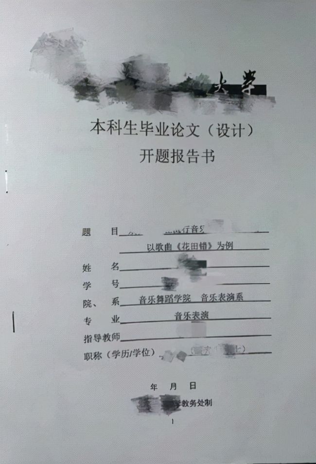 ▼這名歌迷是某大學音樂舞蹈學院音樂表演系學生,研究的題目是流行音樂,並以《花田錯》為主要研究對象。她在論文中提到,《花田錯》這首歌曲是流行樂男歌手王力宏創作並作曲、演唱,引用了京劇中的唱詞《花田錯》的名字,改編成情歌,將流行風格和戲曲風格完美結合,為流行音樂注入新的藝術生命,也讓更多人領悟戲曲的魅力,因此以《花田錯》為例探究流行音樂與戲曲元素的融合路徑具有代表性。指導老師已經「同意修改後開題」。